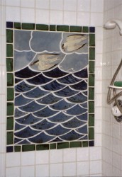 Detail of Endmoor school community ceramic mural (below) of animals leaving Noah's Ark. Overall size: 15m2 in 3D.